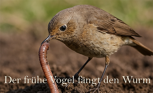 „Morgenstund hat Gold im Mund“, „Der frühe Vogel fängt den Wurm“ – diese oder andere Sprichwörter kriegt man häufig zu hören oder benutzt man gern, um eigene Erfahrungen oder Ratschläge „nett verpackt“ mitzuteilen, Moralvorstellungen weiter zu geben, Gemeinschaftsgefühle zu stiften oder Spannungen in Stresssituationen abzubauen. Oft kann man auch trösten und Mut machen, z.B. in trüben Lebenslagen oder unangenehmen Situationen.