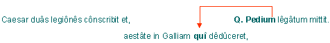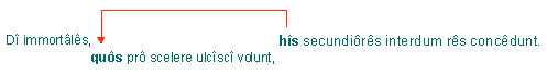 Sind Relativsätze vorangestellt, steht das Relativpronomen im Lateinischen gelegentlich weit im Innern des Relativsatzes: