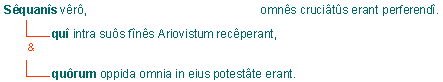 Die Sequaner aber, die Ariovist in ihrem Gebiet aufgenommen hatten und deren Städte sich sämtlich in dessen Gewalt befanden, mußten alle Arten von Qualen erdulden. |